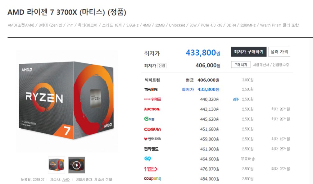 현재 저 제품의 코어와 스레드는 8코어와 16스레드입니다.